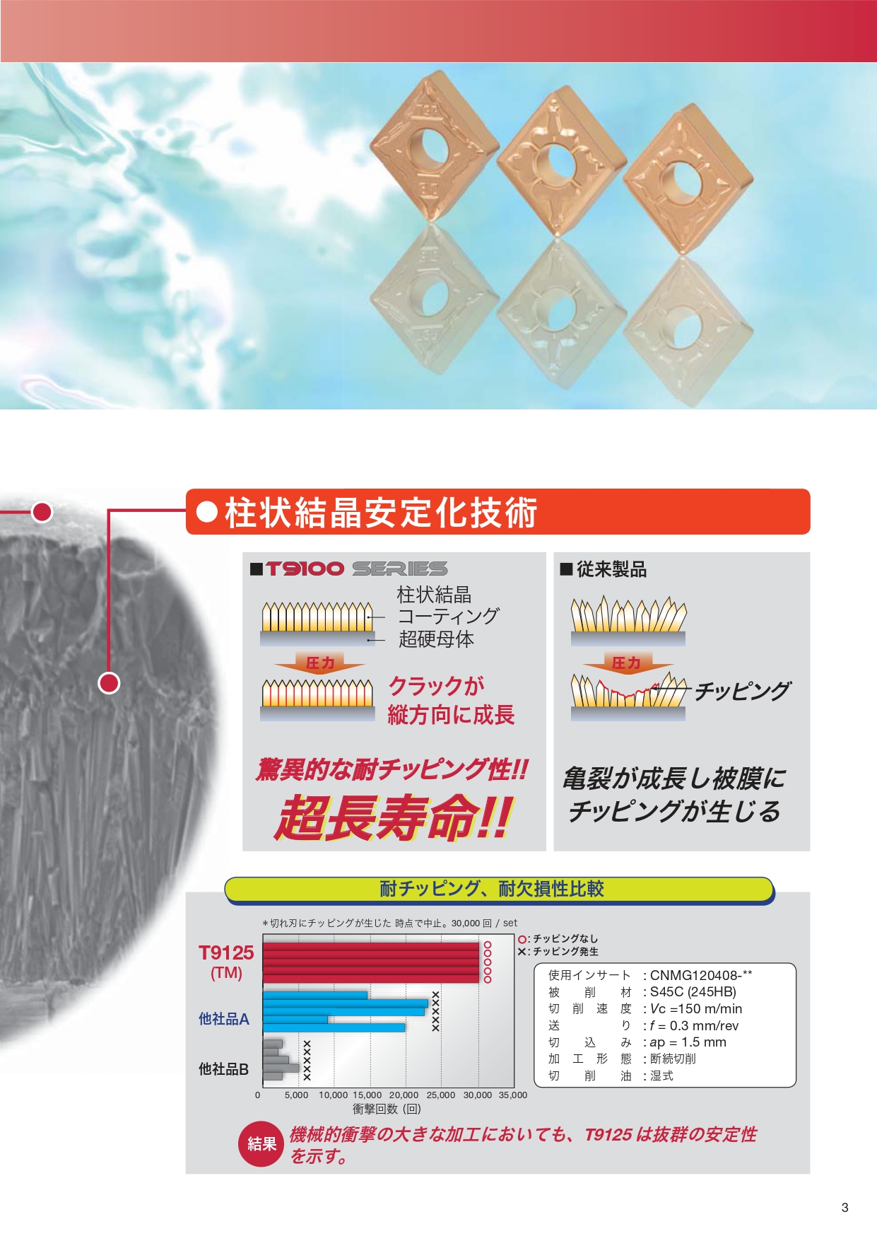T9100系列 碳鋼,合金鋼車削用CVD材種,採用最先進的(Premiumtec)鍍膜平坦化技術。有效防止刀片因切削加工產生之附著及崩刃,增加刀片的使用壽命。 詳細介紹 碳鋼,合金鋼車削用CVD材種,採用最先進的(Premiumtec)鍍膜平坦化技術。有效防止刀片因切削加工產生之附著及崩刃,增加刀片的使用壽命。 回上一頁